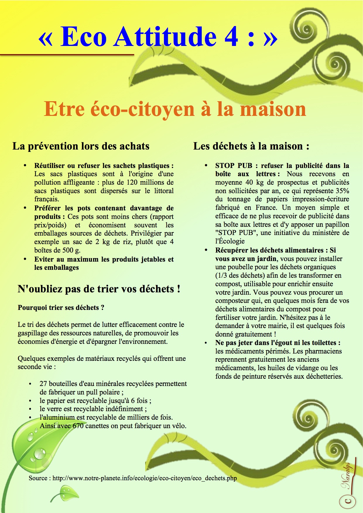 "Eco attitude 4" : Etre éco-citoyen à la maison ( partie 2)