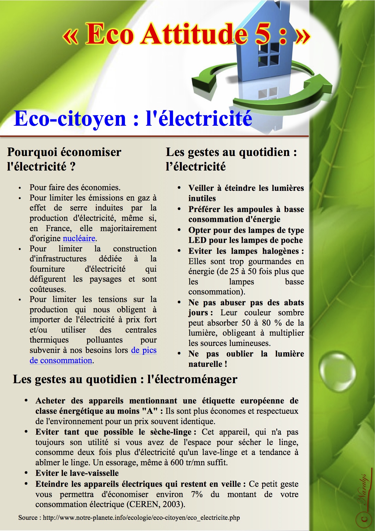 "Eco attitude 3" : Etre éco-citoyen à la maison